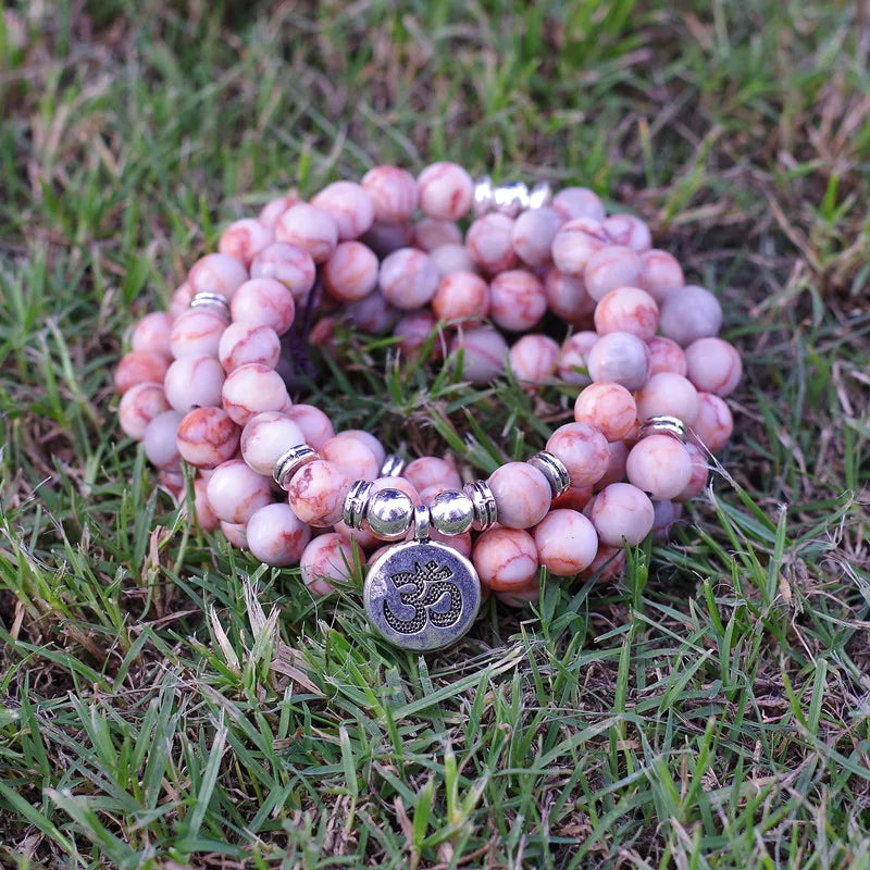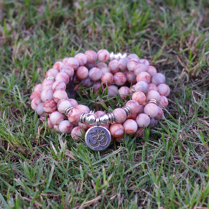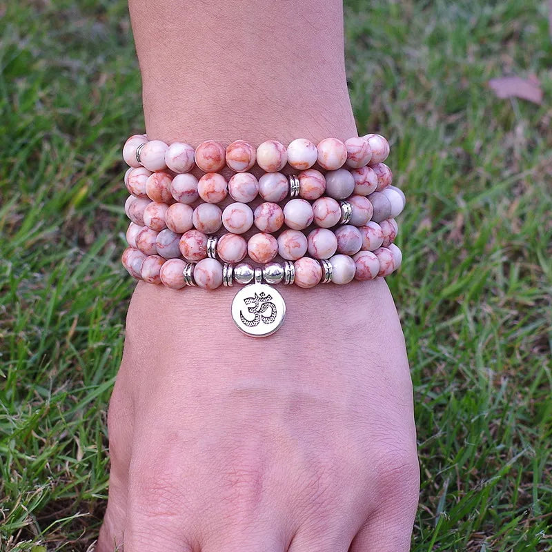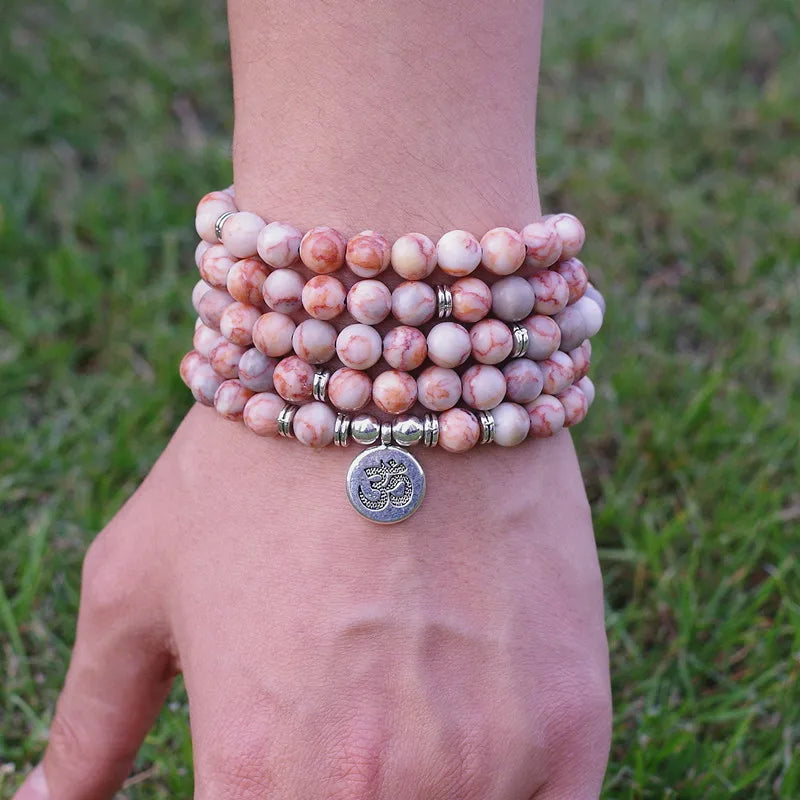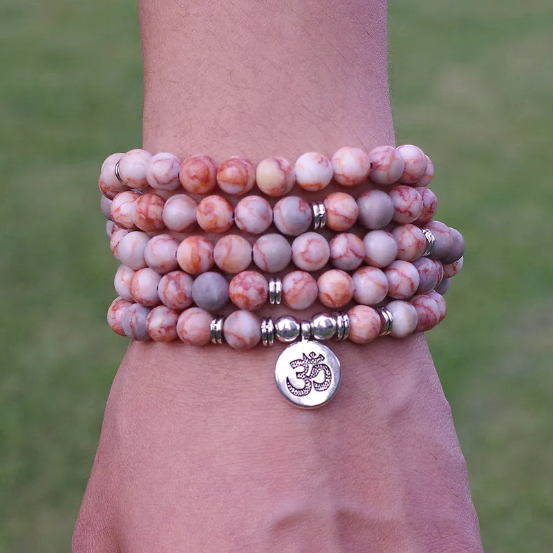 8mm Natural Stone Beads Tibetan Silver Handmade 108 Mala Bracelet