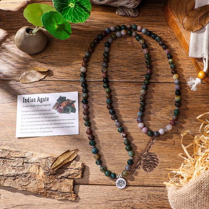 Indian Agate 108 Mala Prayer Bracelet For Meditation