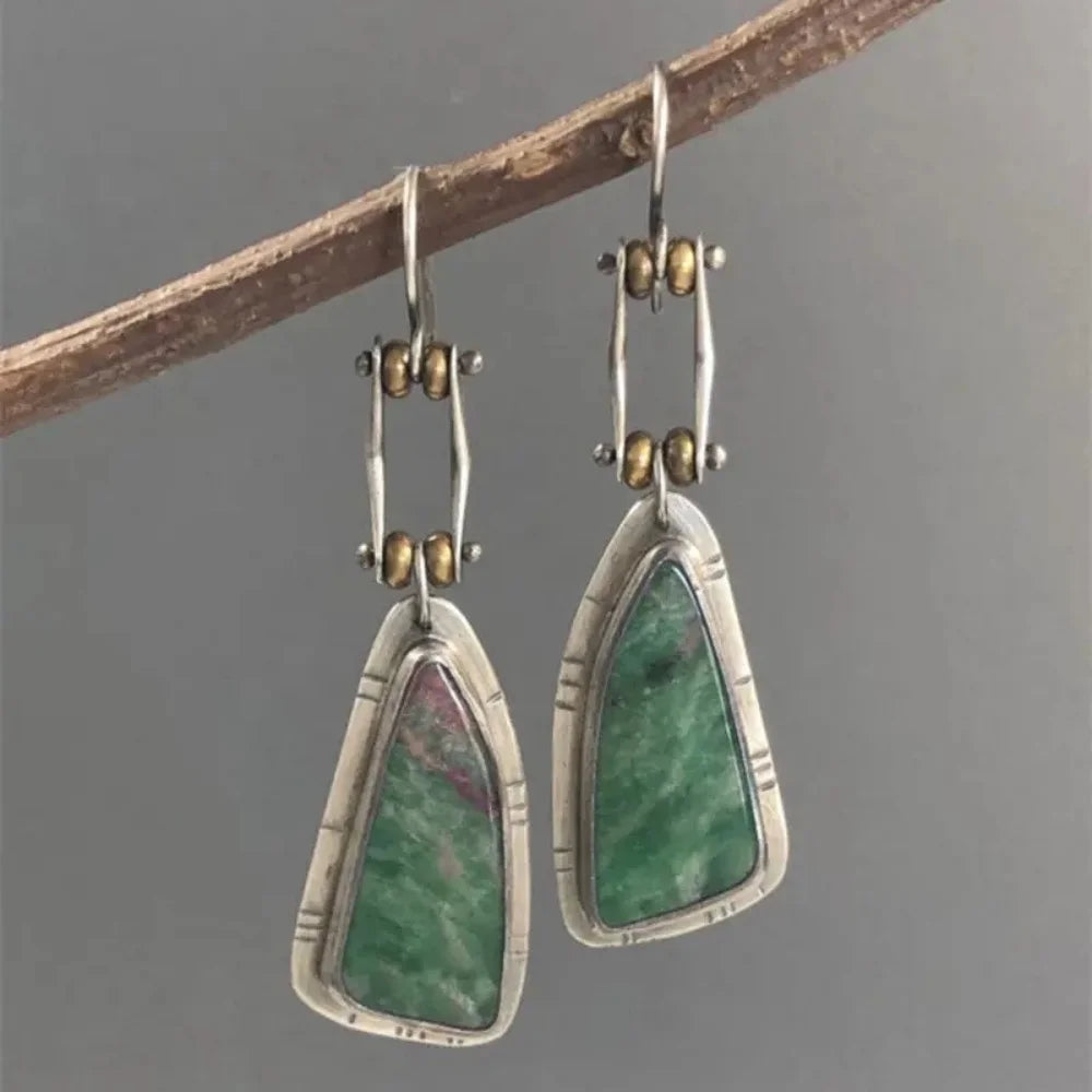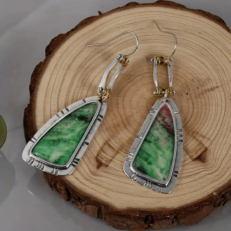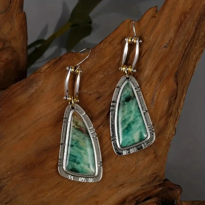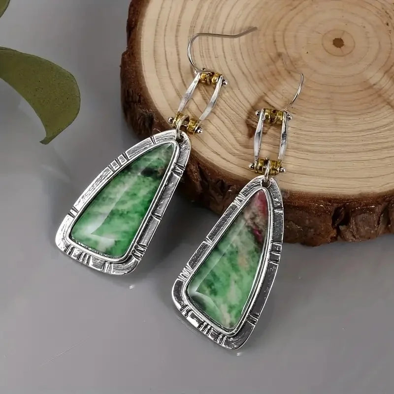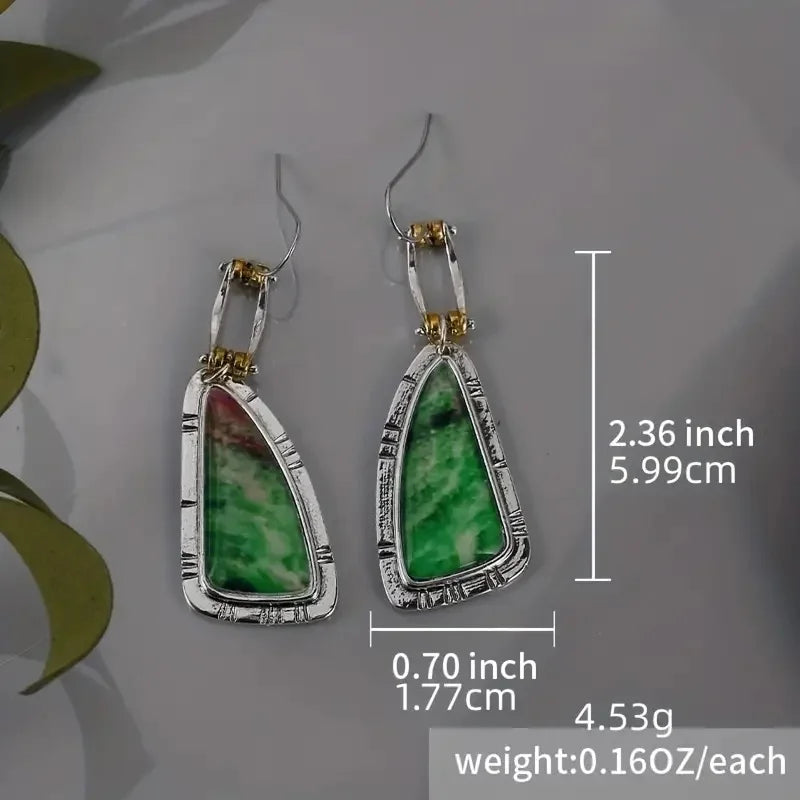 Turquoise Dangle Drop Earrings Unique Irregular Shape Silver Plated