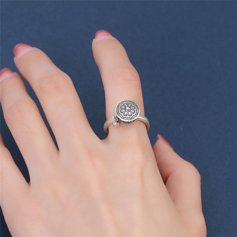 925 Silver Buddhist Tibetan Prayer Wheel Ring