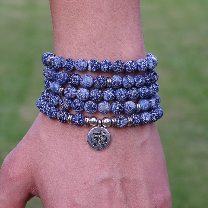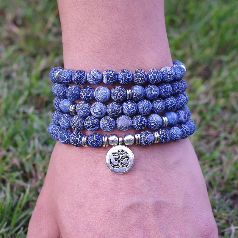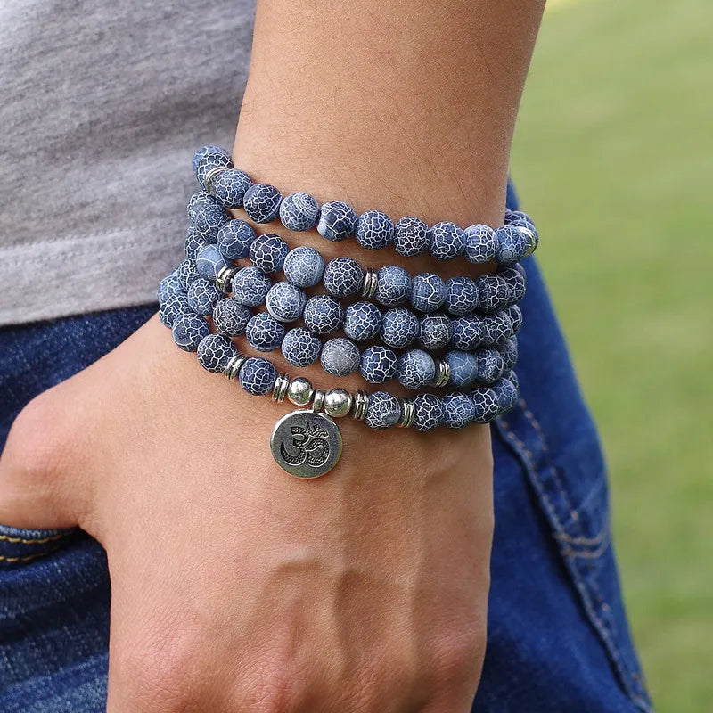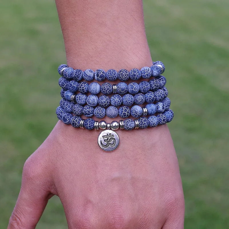 8mm Natural Stone Bead Tibetan 108 Mala Bracelet or Necklace